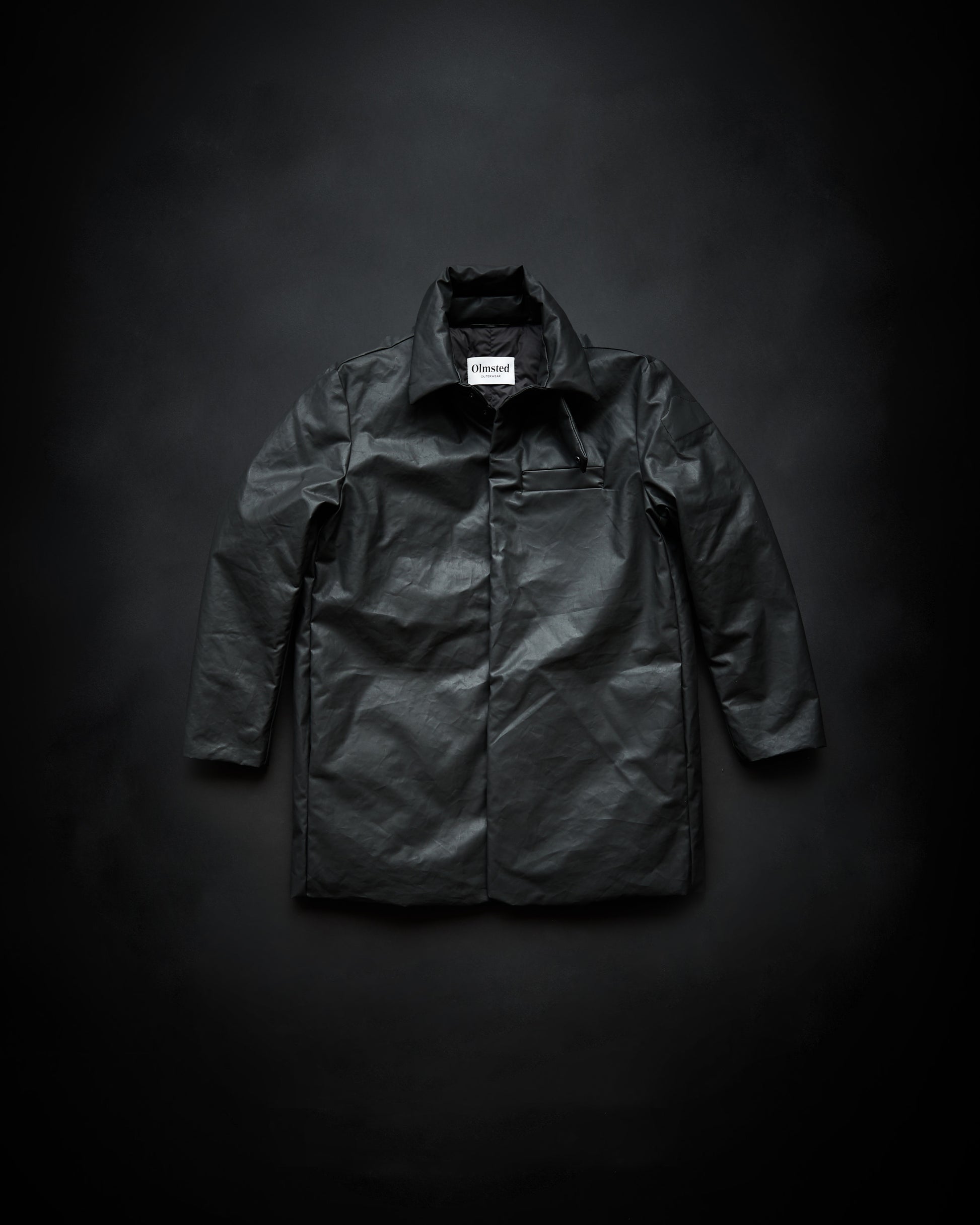Heavy-weight (285 gr.) Dry Wax Canvas, proofed and woven in Como, Italy. Made of a durable blend of rugged nylon and cotton with a mat waxed finish, giving Olmsted's outer a unique appearance and an extreme resistance to the elements. This waxed canvas remains washable and will not transfer oil.