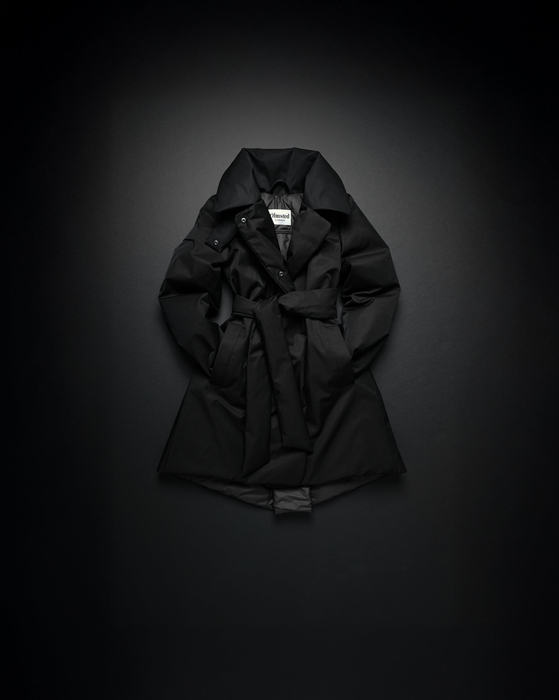 The Olmsted edit of the trench is rainproofed and dressy, yet insulated for colder days. Think puffer meets trench coat—reborn in Canadian eiderdown. Designed with generous overlap, a deep back fold, and refined reese pockets, it balances structure and design with protection. Our signature shirt sleeves and extra-high collar, closed with an insulated tab, add to its considered form. A wide belt defines the silhouette, while every detail has been thought through. Compatible with the hood from our Building Blocks collection, it adapts seamlessly to your needs. Every part of The Trench is insulated with a thin veil of Canadian eiderdown for warmth without weight. The ultimate transitional piece.