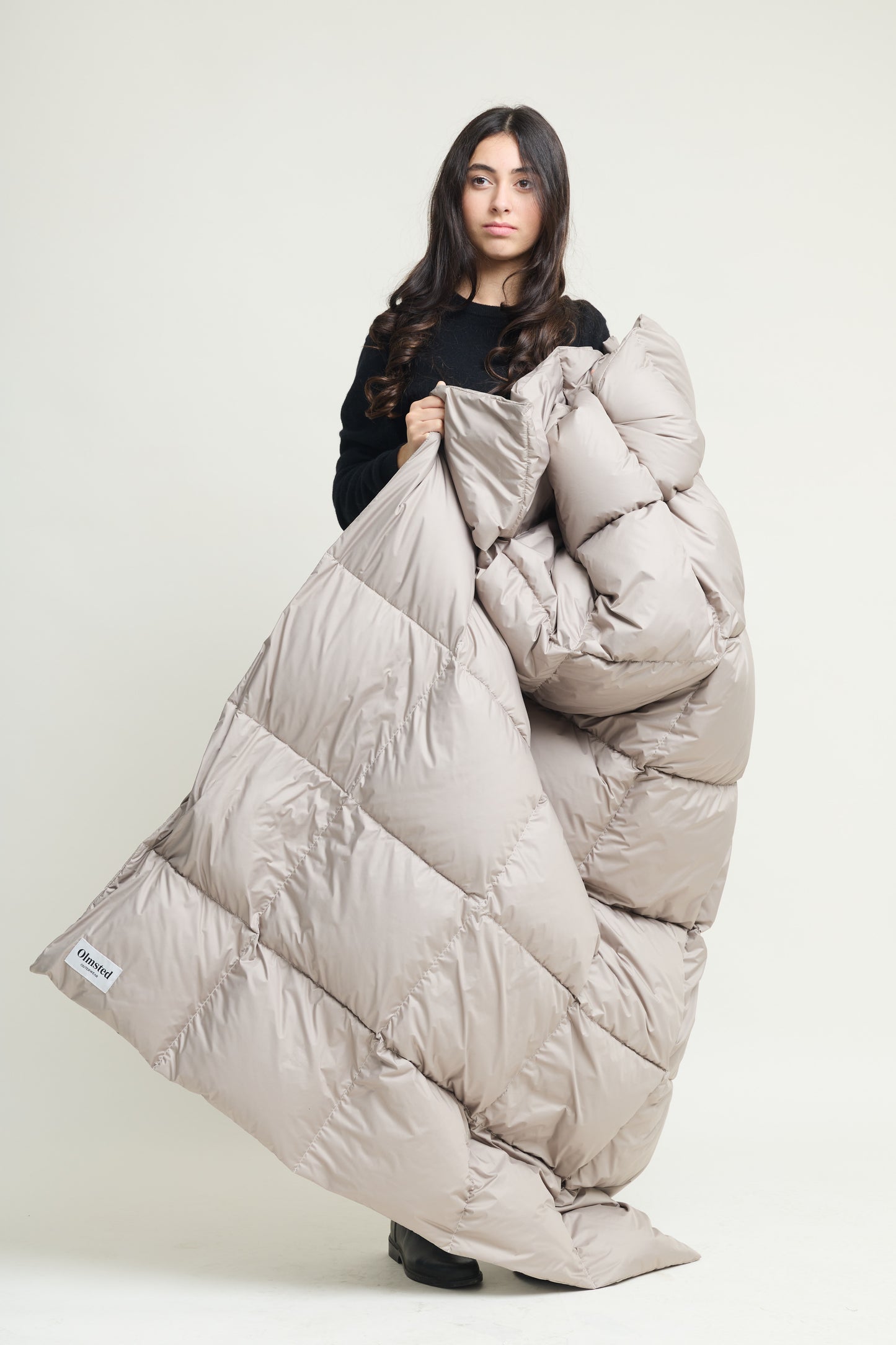 Made with 100% Canadian eiderdown—the rarest, kindest down on earth—The Throw is available in our lightest Re-Nylon and in our new water-repellent wool–cashmere blend. A timeless piece of quiet luxury, built to keep you warm wherever life takes you.