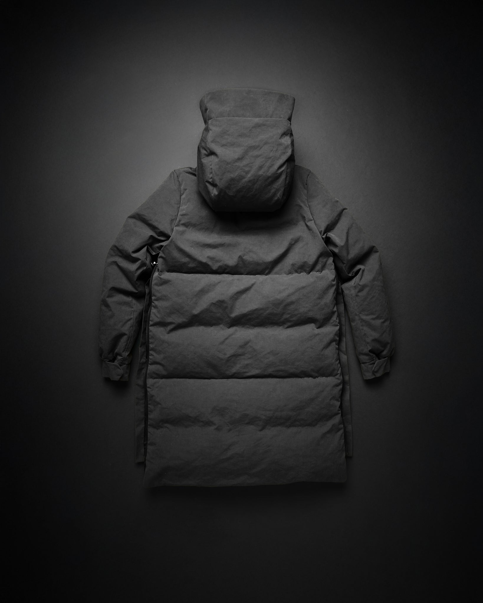 裏地 イタリアのコモで織られた、GRSリサイクルナイロン(PA)100%を使用した100gのシルキー生地。ダウンプルーフ、通気性、お手入れのしやすさに優れ、アイダーダウンを閉じ込め湿気をシャットアウトしながら、快適な肌触りを実現します。