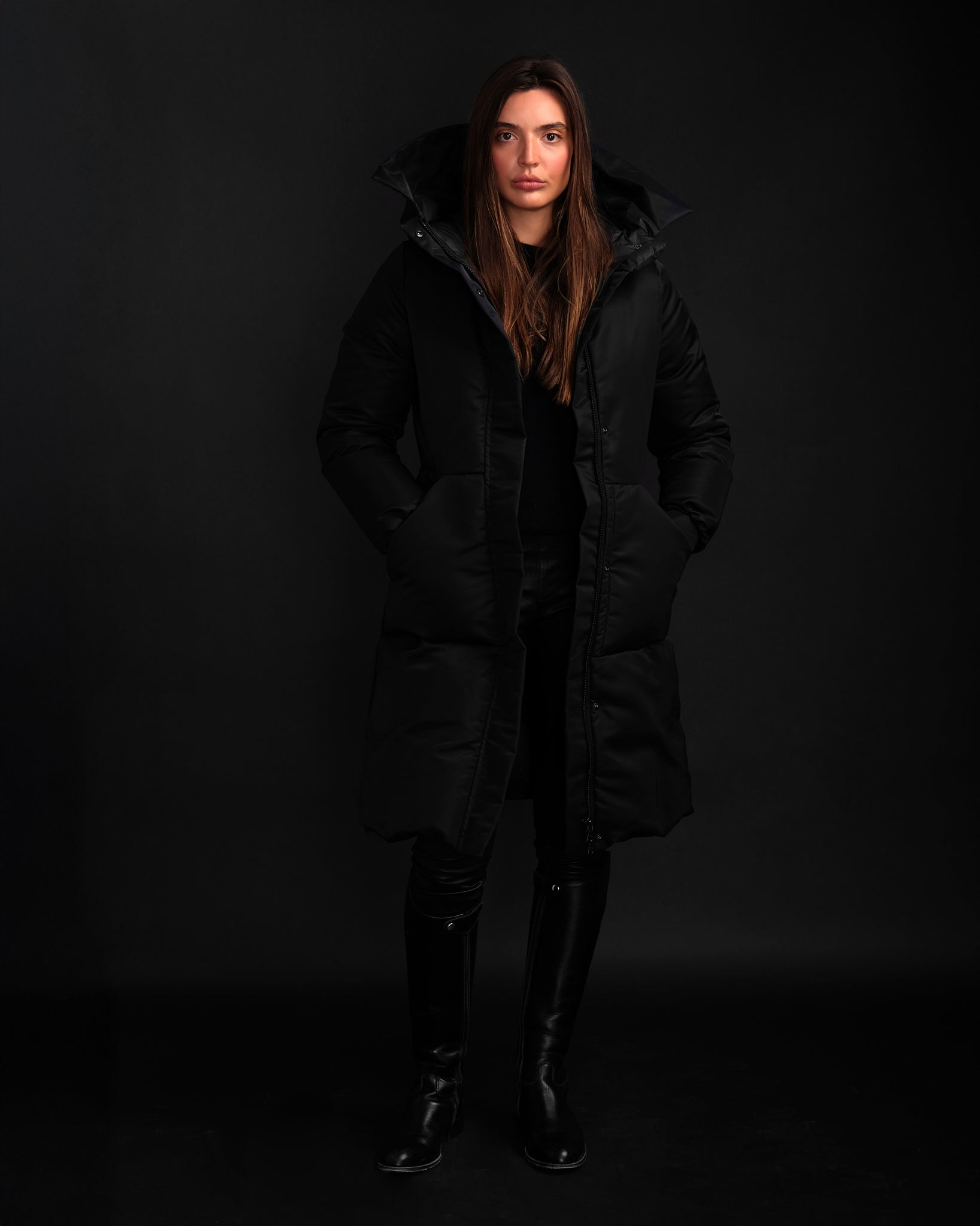 The Classy is built from our heaviest weatherproof outer shells and generously insulated with rare Canadian eiderdown. From freezing city cabs to remote wilderness, it offers enveloping warmth and serious protection in an elegant, wear-anywhere form. Designed with a deep, covering hood and a refined cut to weather the storm.
