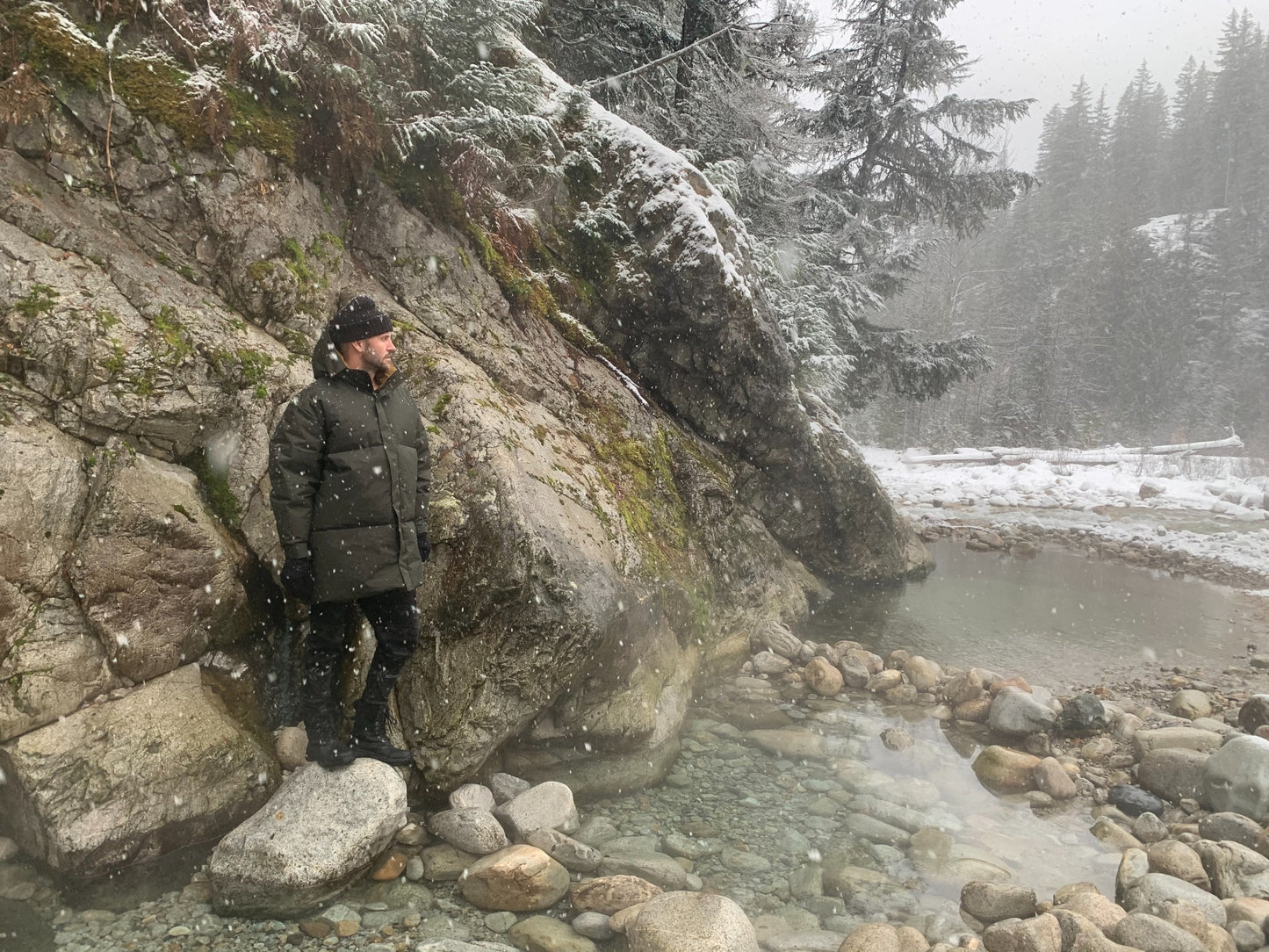 A deep, fully insulated hood and huge hand-warming pockets offer shelter from every element.